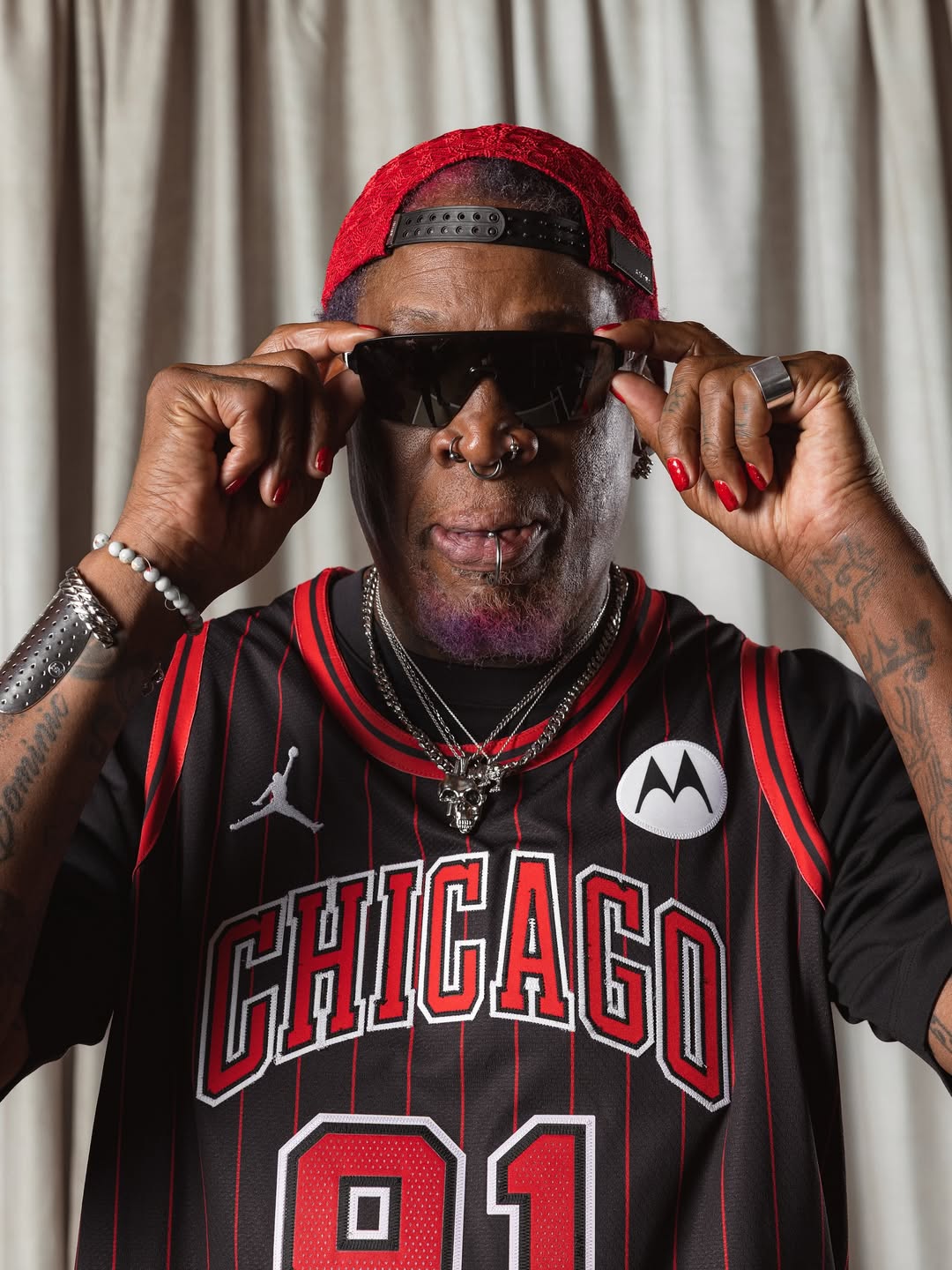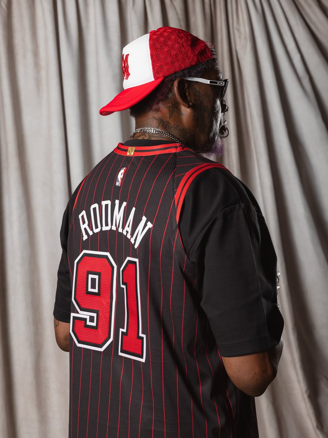 虎扑08月07日讯 公牛官方更新Ins,晒出一组前NBA球员丹尼斯-罗德曼展示球队新球衣的照片与球迷分享。